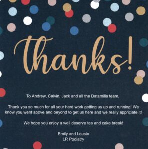 It was sent by a lovely customer to thank the team for going above and beyond to support them during a stressful period recently.